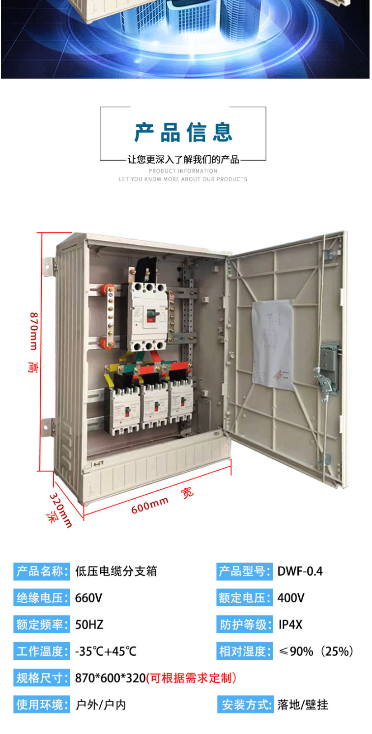 低壓電纜分支箱0.4kv一進三出電纜分接箱開關箱戶外壁掛防雨箱SMC玻璃鋼布線箱電纜轉接箱