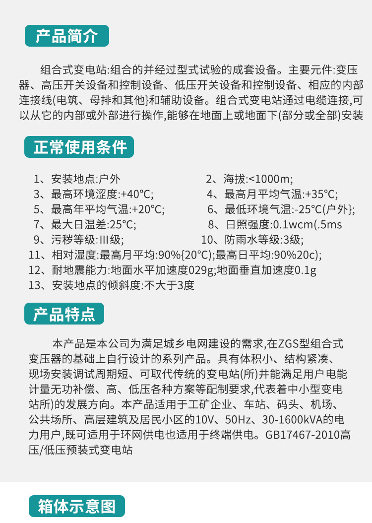 10KV箱式變電站800KVA歐式箱式變電站1250kva